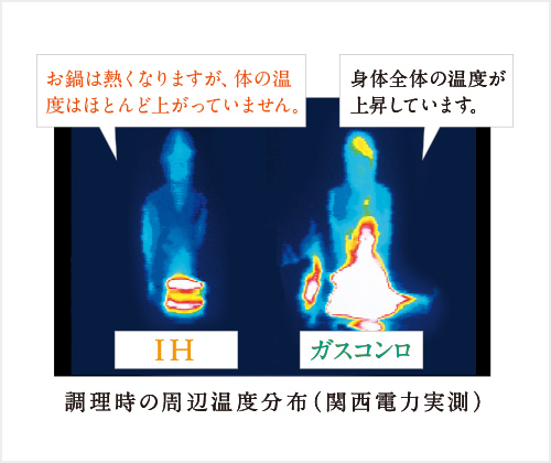 火を使わないため輻射熱が少なく、コンロの周囲が暑くなりにくいとともに、結露も抑止。