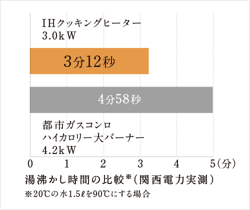 IHは熱効率が高く、高火力。加熱も早いため、スピーディーな調理を実現。