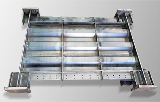低降伏点鋼という特殊な鋼材を使用した鉄骨梁型のダンパー。廊下床下の短スパン梁を利用しています。