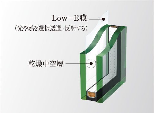遮熱性の高いLow-Eガラスを採用※。光を取り入れながら熱は遮るため、夏の室内温度の上昇を抑えます。また、冬は冷気を遮り断熱効果を発揮。紫外線もカットします。