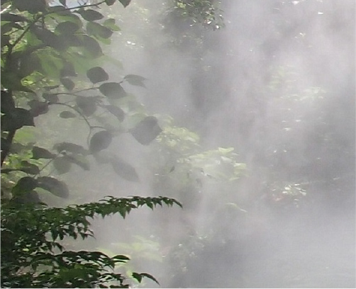 ランドスケープにドライミストを設置。クーリング効果により爽やかな環境を創出し、ヒートアイランド現象の抑止にも寄与します。